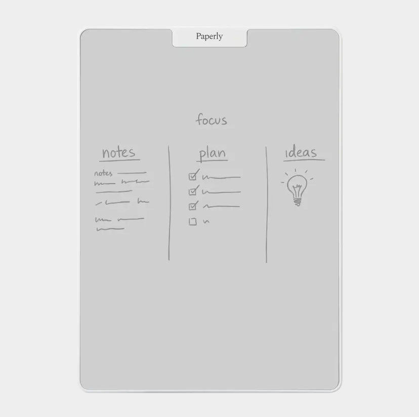 Paperly è una superficie di scrittura compatta e riutilizzabile da 10 pollici, perfetta per idee veloci, liste di cose da fare e appunti durante la giornata.
